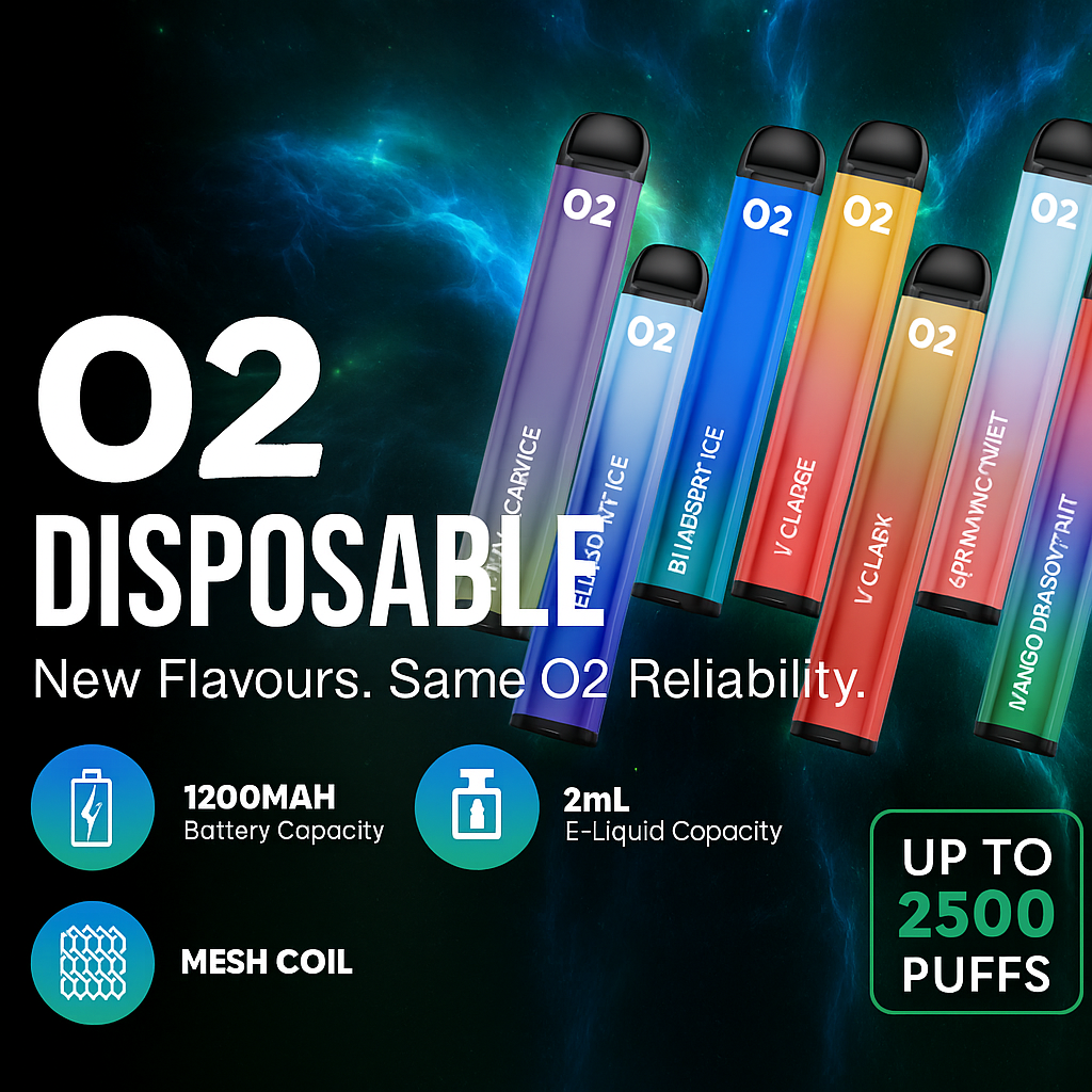 Compact and easy to use, the O2 Disposable requires no charging and no refilling—just open and enjoy. With a wide selection of delicious fruity, icy, and classic flavours, the O2 2500 guarantees a smooth nicotine hit and consistent taste from the first puff to the last.